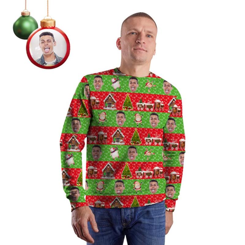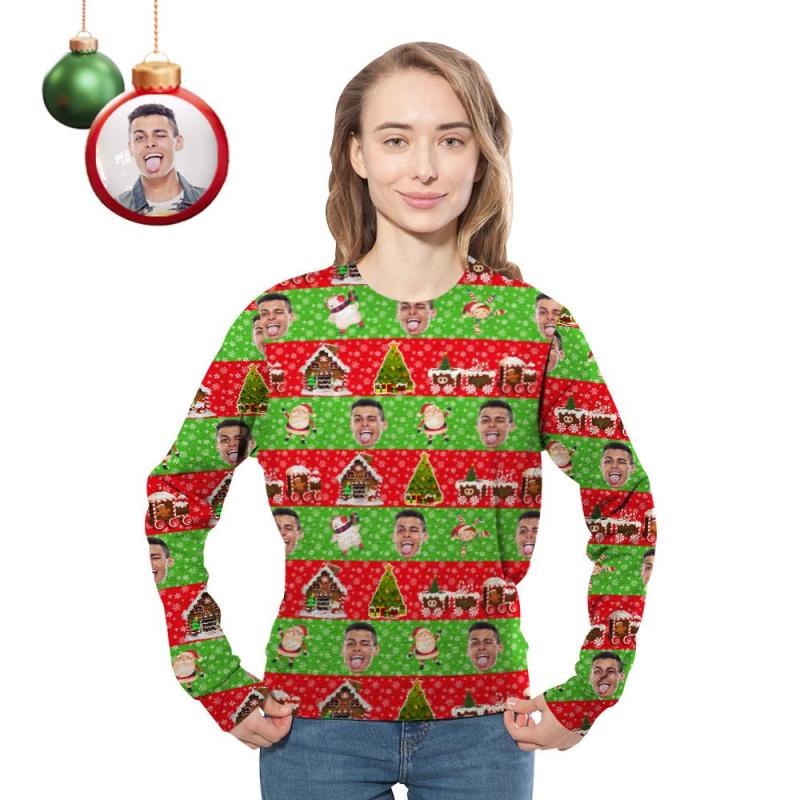 Benutzerdefiniertes Gesicht Unisex Weihnachts-Sweatshirt Zwanglos Weihnachtsmann Gedrucktes Foto Hemd mit Rundhalsausschnitt
