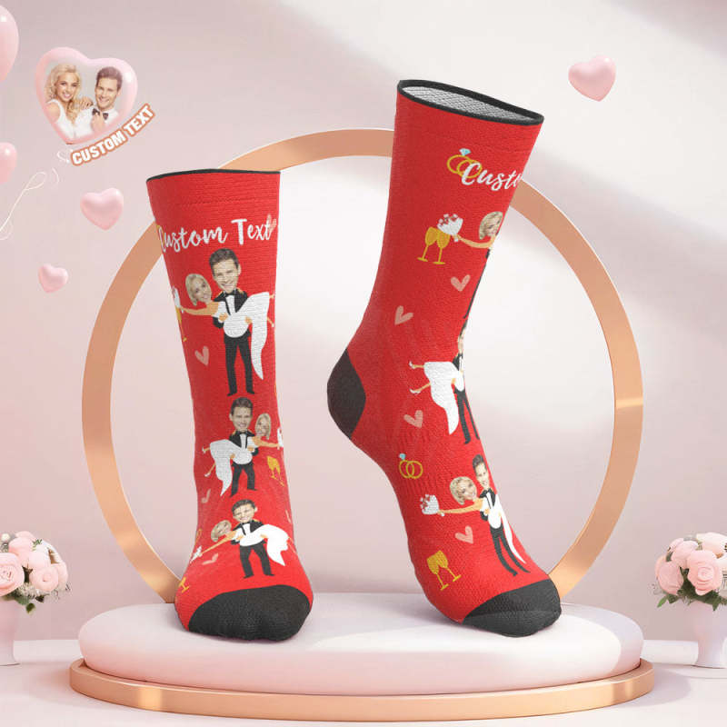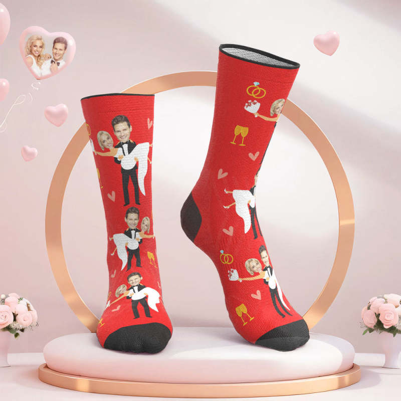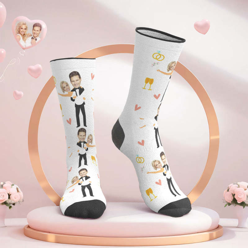 Benutzerdefinierte Gesicht Hochzeitssocken Paar Gesicht Umarmung Liebessocken