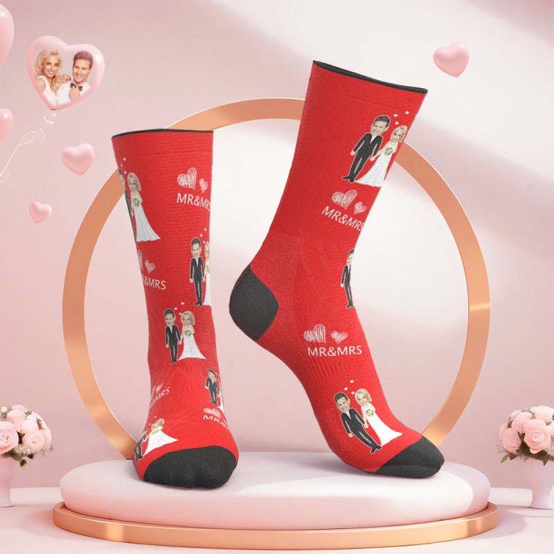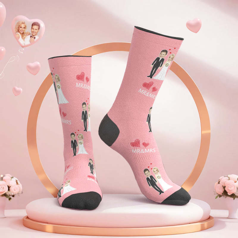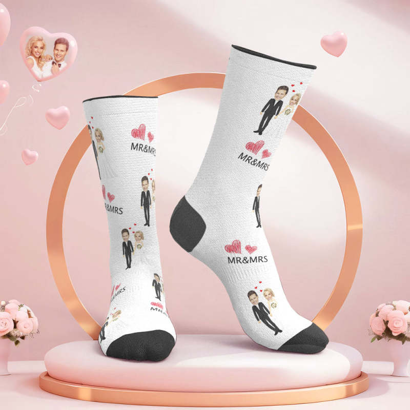 Hochzeitssocken Mit Individuellem Gesicht, Mr Und Mrs, Individuelles Hochzeitsgeschenk