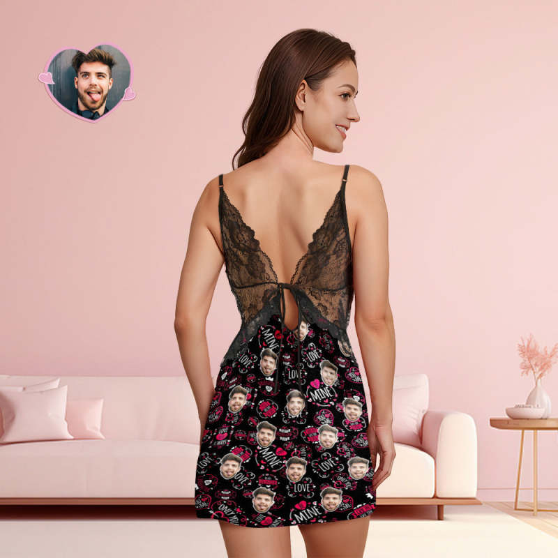 Benutzerdefiniertes Gesicht Damen-nachtwäsche Aus Spitze, Be Mine, Personalisiertes Foto-nachtwäsche, Valentinstagsgeschenk