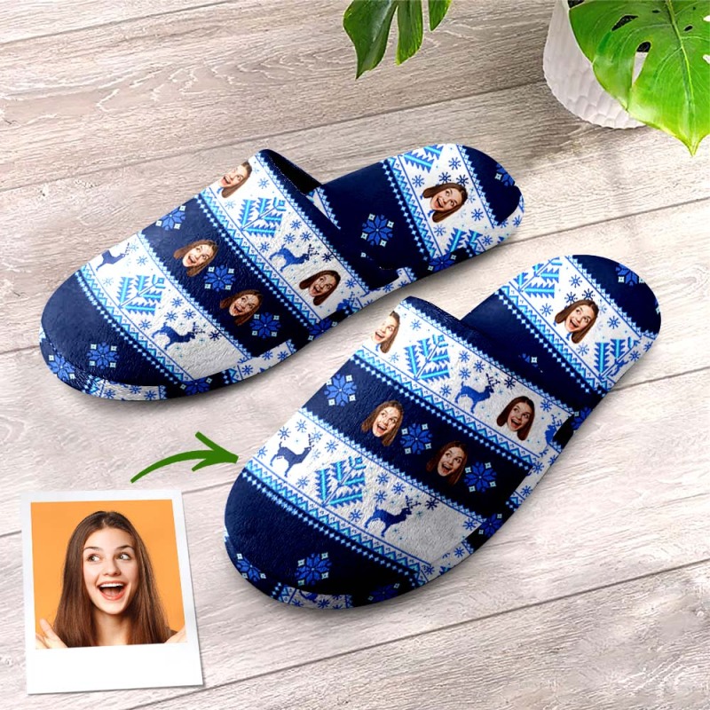 Custom Face Weihnachtshausschuhe Für Damen Und Herren, Personalisierbar, Mit Nordischem Muster, Für Drinnen Und Draußen, Schlafzimmer, Baumwolle