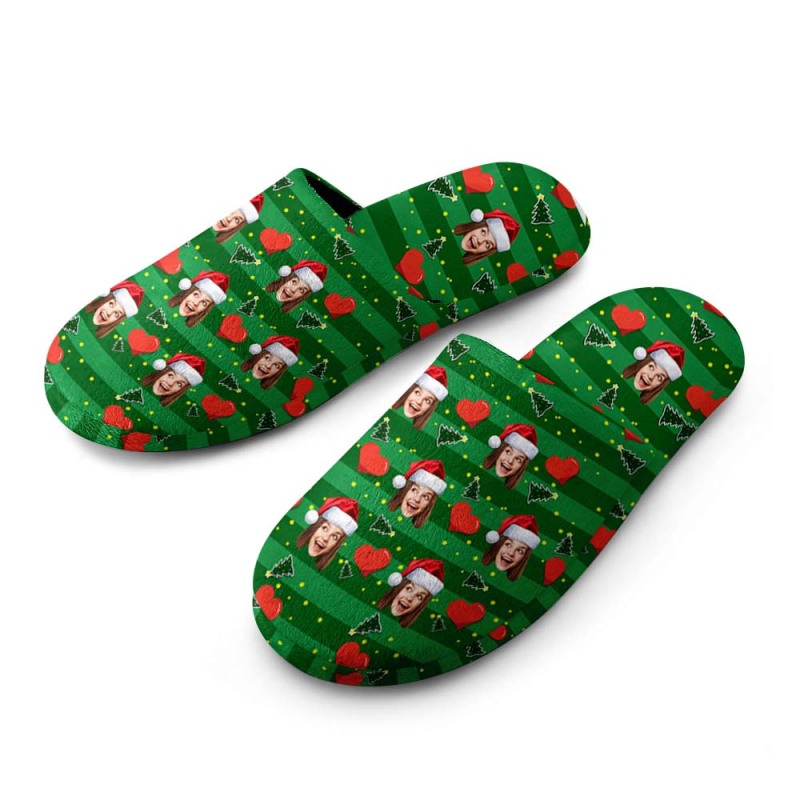Custom Face Damen- Und Herrenhausschuhe Personalisiertes Weihnachtsherz Indoor Outdoor Schlafzimmer Baumwollhausschuhe
