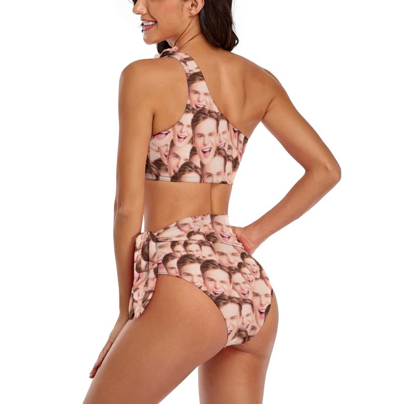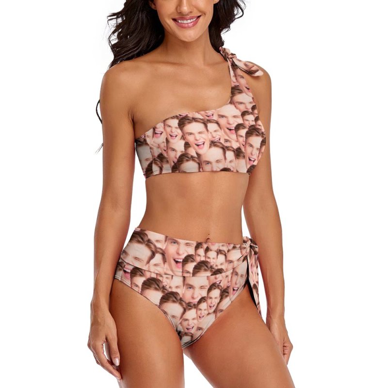 Custom Face Damen One-shoulder Face Mash Bikini Mit Hoher Taille