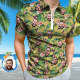 Benutzerdefiniertes Lustiges Poloshirt Mit Reißverschluss, Personalisiertes Gesicht Im Hawaiianischen Stil, Poloshirt Für Männer