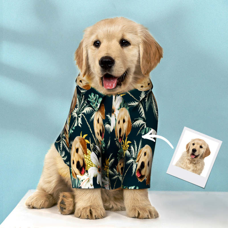 Kundenspezifisches Hawaiisches Hundehemd-personalisiertes Dunkelgrünes Haustier-strand-hemd-kleidungs-geschenk Für Haustiere