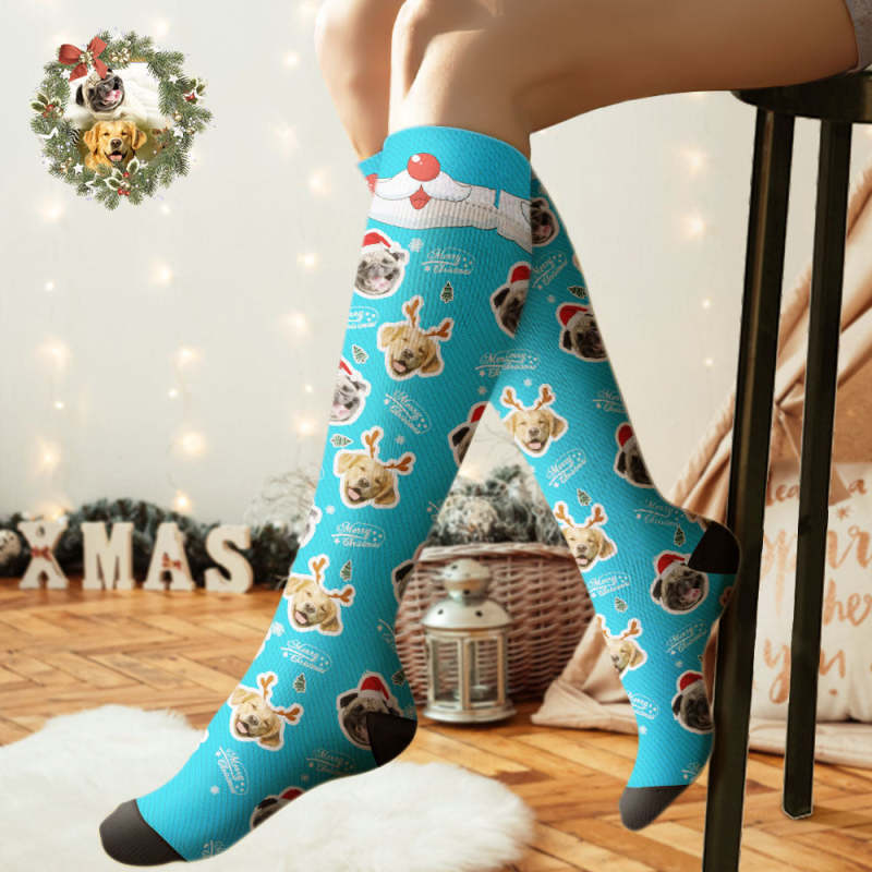 Benutzerdefinierte Kniestrümpfe Personalisierte Gesichtssocken Frohe Weihnachten Hundegesicht Für Haustierliebhaber