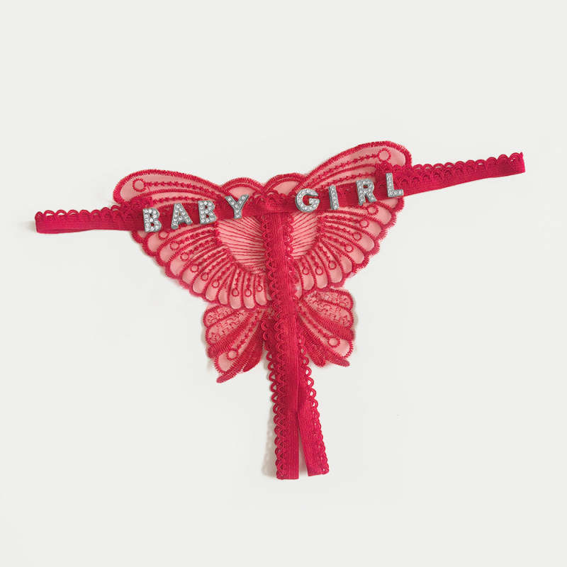 Benutzerdefinierte Spitze Hohl Schmetterling Sexy Low Waist Höschen Mit Schmuck Kristall Buchstabe Name Open Cut Tanga Unterhose Damen Unterwäsche