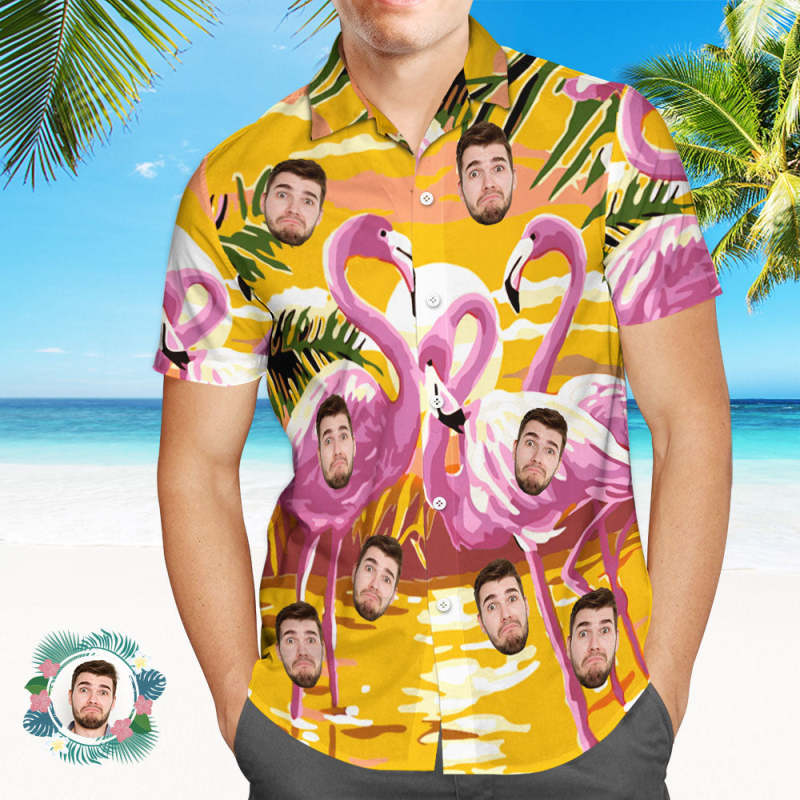 Benutzerdefiniertes Herren-hawaii-hemd Mit Flamingo- Und Twilight-gesicht