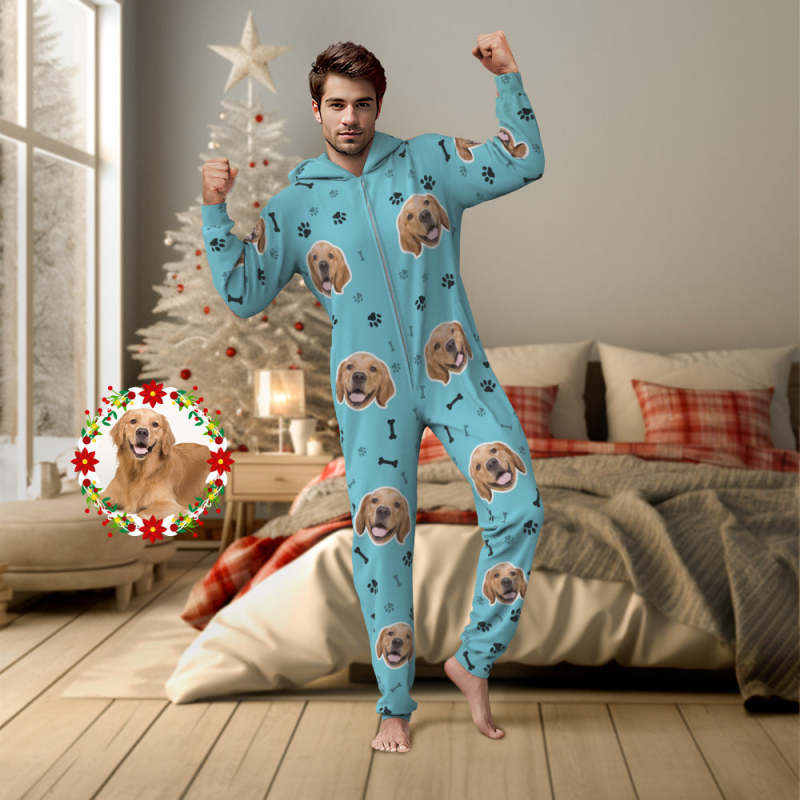 Benutzerdefinierte Onesies Mit Gesichts- Und Pfotenabdruck, Weihnachtspyjamas, Einteiler, Nachtwäsche, Weihnachtsgeschenk