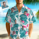 Personalisiertes Foto-hawaii-hemd Mit Blauen Blättern, Personalisiertes Gesicht, Flamingo-hawaii-hemd