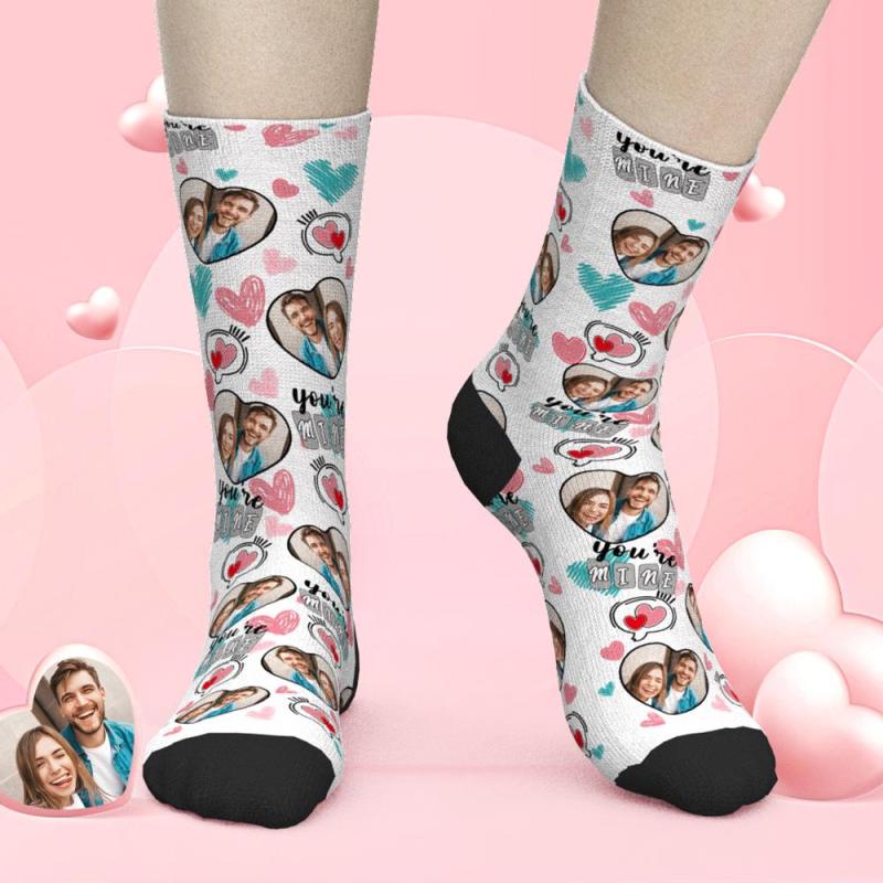 Benutzerdefinierte Foto Herz Socken Valentinstag Geschenke Für Liebhaber - Du Gehörst Mir