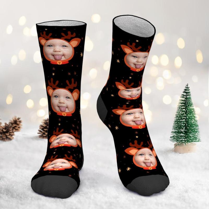 Benutzerdefinierte Foto Socken Weihnachten Fawn Gesicht Socken