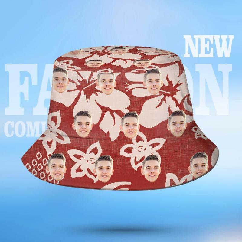 Passen Sie Ihr Gesicht an und laden Sie Ihre Fotos auf diesem Fischerhut hoch, um Sie in der Menge attraktiver zu machen.