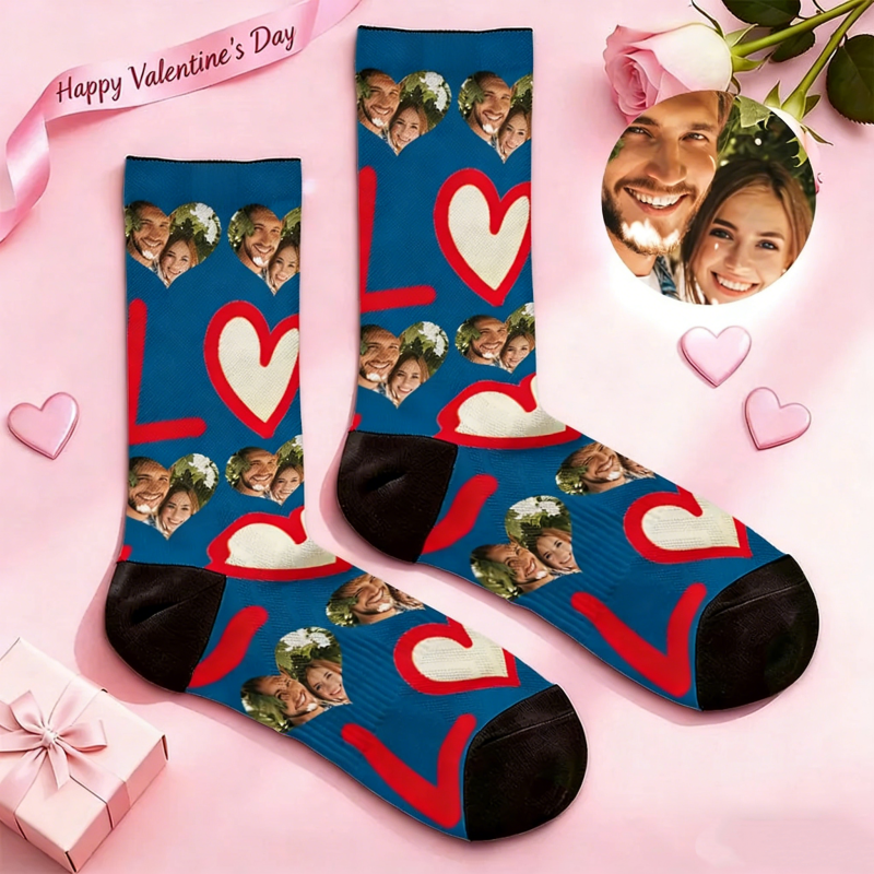 Personalisierte Socken Mit Rotem Herzmotiv – Valentinstagssocken Mit Foto, Süßes Herzmuster, Geschenkidee Für Paare