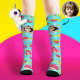 Benutzerdefinierte Socken Kniehohe Gesichtssocken Faultierpuppe Rosa Dessertsocken - Benutzerdefinierte Socken Kniehohe Gesichtssocken Faultierpuppe Rosa Dessertsocken -