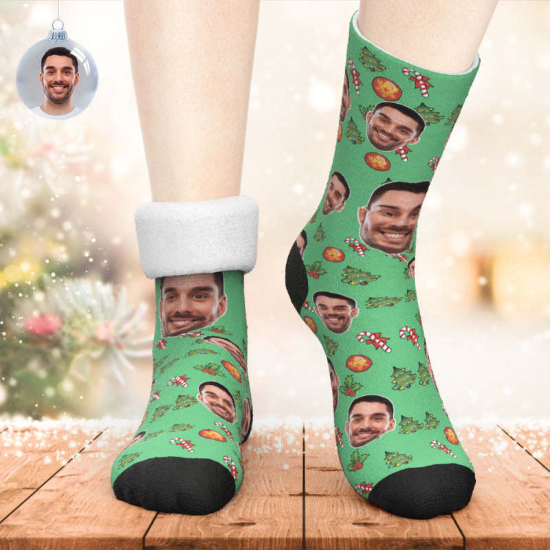 Benutzerdefinierte Dicke Socken Foto 3d Digital Gedruckte Socken Winter Warme Zuckerstange Weihnachtssocken