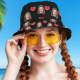 Benutzerdefiniert Dein Foto Sommer Eimerhut für Gesicht und Haustier Fischerhut - Herz Schwarz