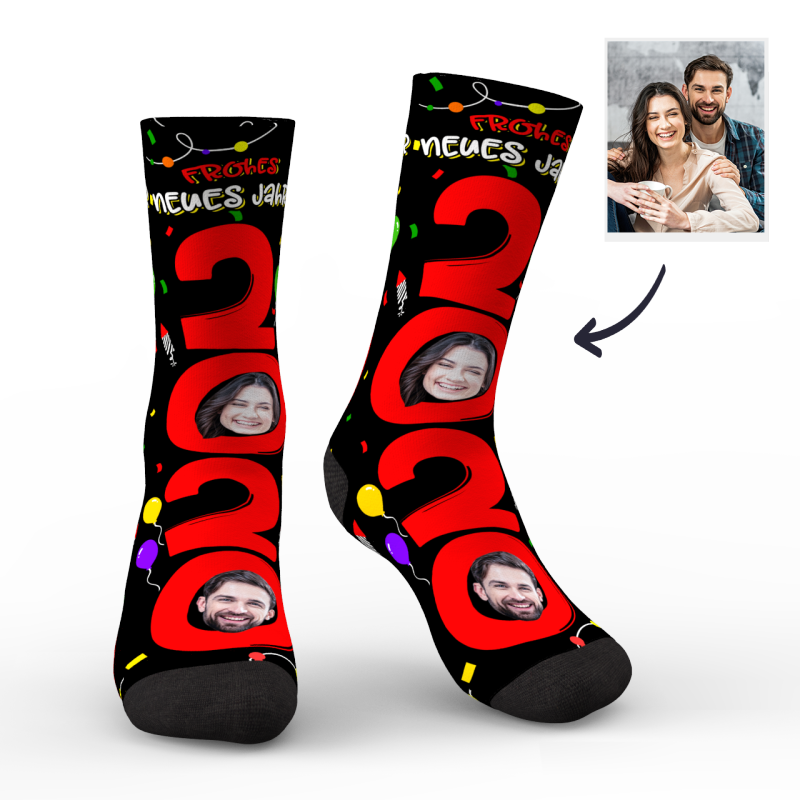 Gesicht auf Socken 2020 Frohes Neues Jahr