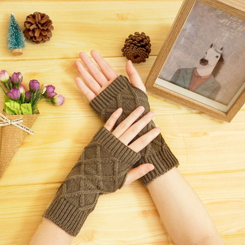 Handschuhe Damen Winter Halbfinger Warmer Und Kälteschutz Kurze Strickärmel