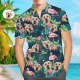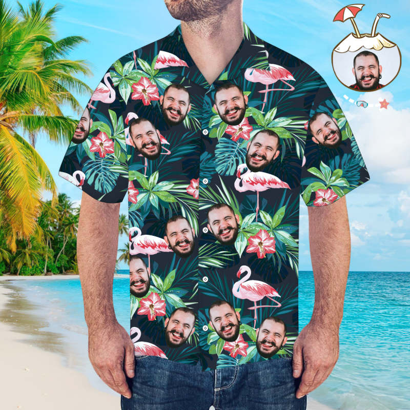 Herren Custom Face Hemd Hawaiihemd Kurzarm Tropical Leaves Flamingo