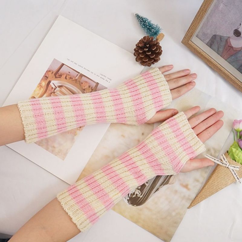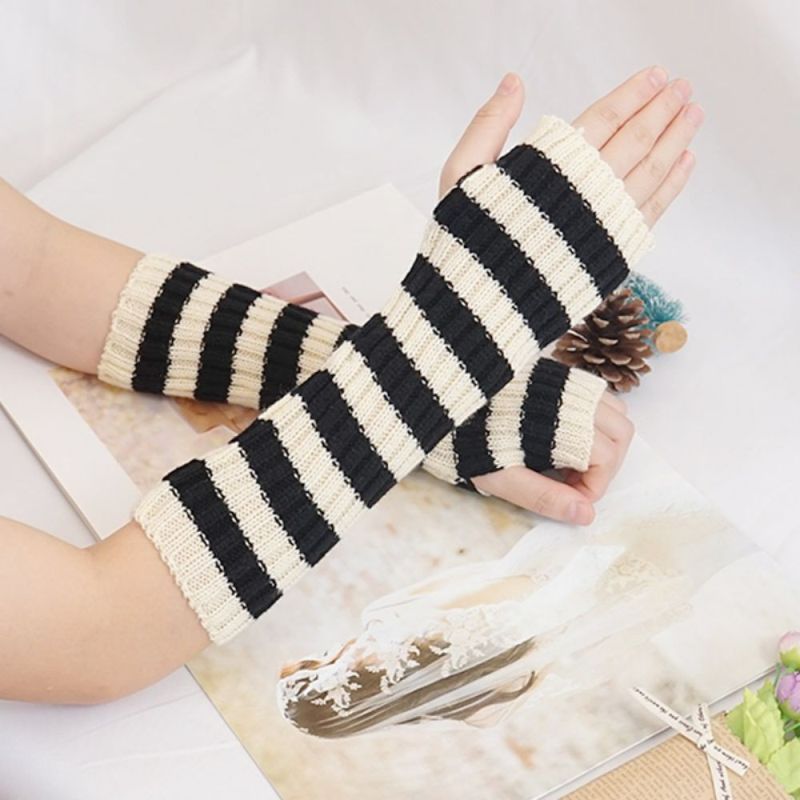 Gestrickte, Grob Gestreifte Armabdeckung, Mittellange, Warme Halbfinger-winterhandschuhe