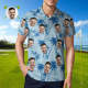 Herren-poloshirt Mit Individuellem Gesicht, Personalisierte Hellblaue Hawaiianische Golf-shirts