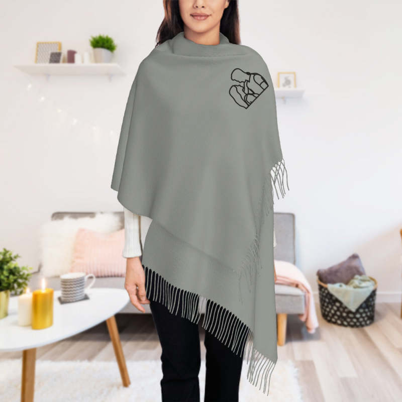 Personalized Embroidery Scarf Custom Line Drawing Scarf Warm Fringe Shawl Gift for Lovers