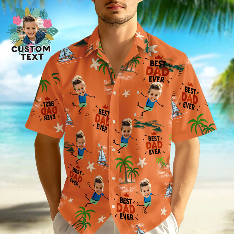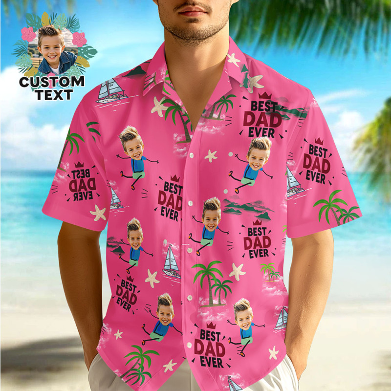 Personalisiertes Gesichts-hawaii-shirt „bester Papa Aller Zeiten", Rosa Hawaii-hemd, Männer-gesicht, Hawaii-hemd, Vatertagsgeschenk
