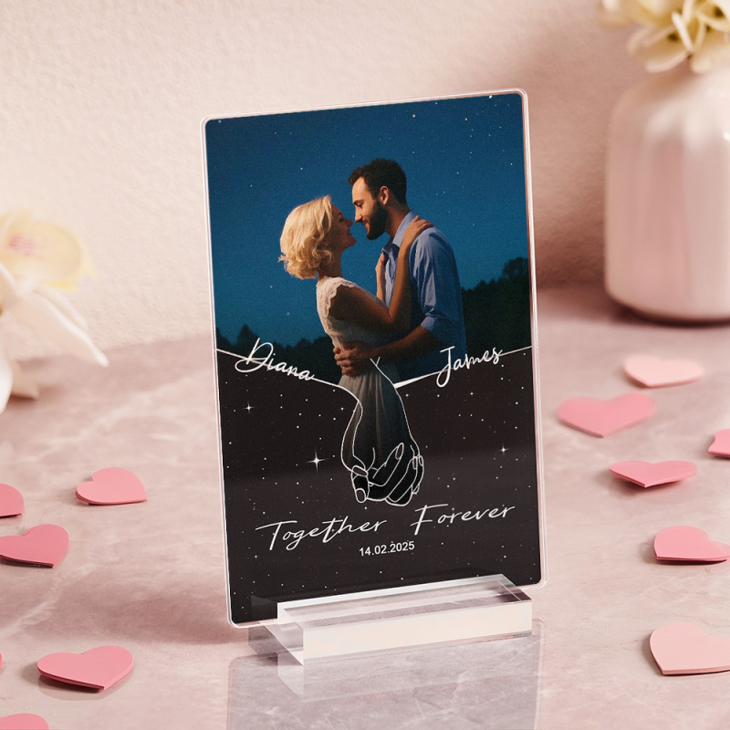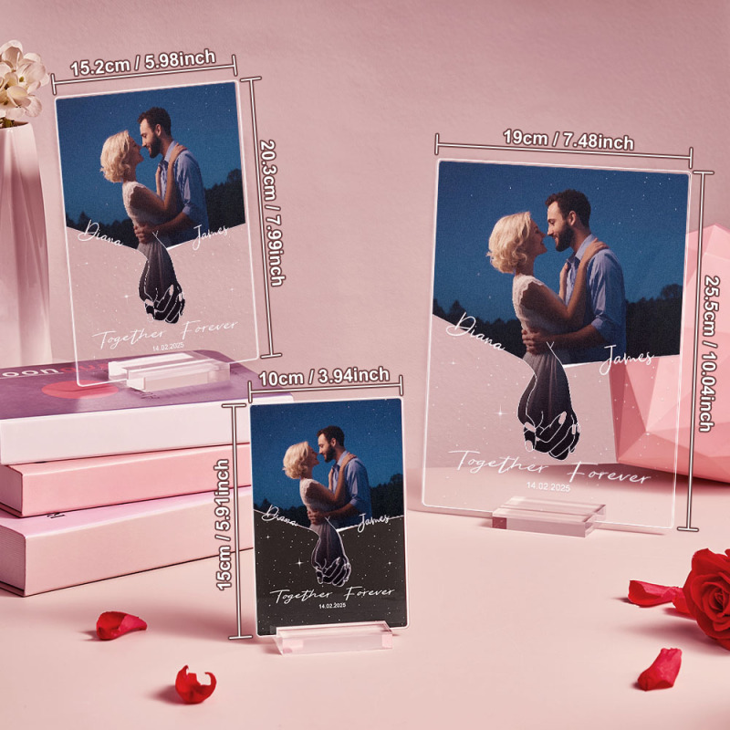 Werten Sie Ihre Geschenke an diesem Jahrestag, Valentinstag oder Weihnachten mit einem Andenken auf, das die Essenz Ihrer Beziehung wunderschön einfängt. Die personalisierte, individuell geformte Fotoplakette aus Acryl ist nicht nur ein Geschenk; Es ist ein Symbol ewiger Liebe, eine visuelle Erinnerung an die herzerwärmenden Kapitel, die sich in Ihrer Liebesgeschichte noch entfalten.