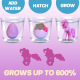 - Innerhalb von 24 Stunden platzt das Ei auf. Ab dem 3. Tag beginnt das Einhorn zu wachsen – lass es unter Wasser, um zu sehen, wie es sich ausdehnt. Bis zum 5. Tag kann es bis zu 600 % wachsen! Wenn das Wasser trüb wird, tausche es gegen frisches Wasser (nicht über 35 °C) aus. Das Einhorn schrumpft wieder auf seine ursprüngliche Größe, wenn es einige Tage aus dem Wasser genommen wird. Du kannst den Spaß wiederholen, indem du es einfach wieder einweichst! Mach es spannend: Beobachte die täglichen Veränderungen des Eis mit deinem Kind oder verwandle es in ein kleines Wissenschaftsexperiment, um mehr über Wasseraufnahme zu erfahren!