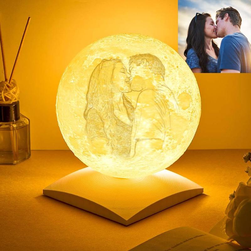 Valentinstagsgeschenke Benutzerdefinierte 3d-druck-foto-mondlampe Mit Drehbarem Sockel - Berühren Sie Zwei Farben (10 Cm - 15 Cm)