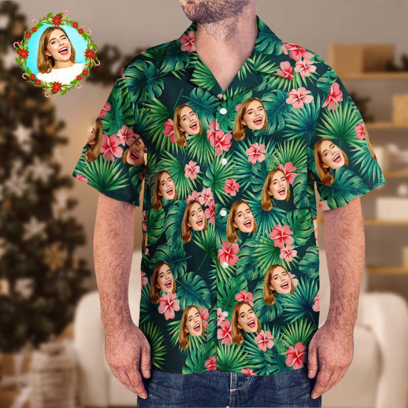Weihnachtsgeschenke Benutzerdefiniertes Gesicht Shirt Herren Hawaii Hemd Rot Blumen
