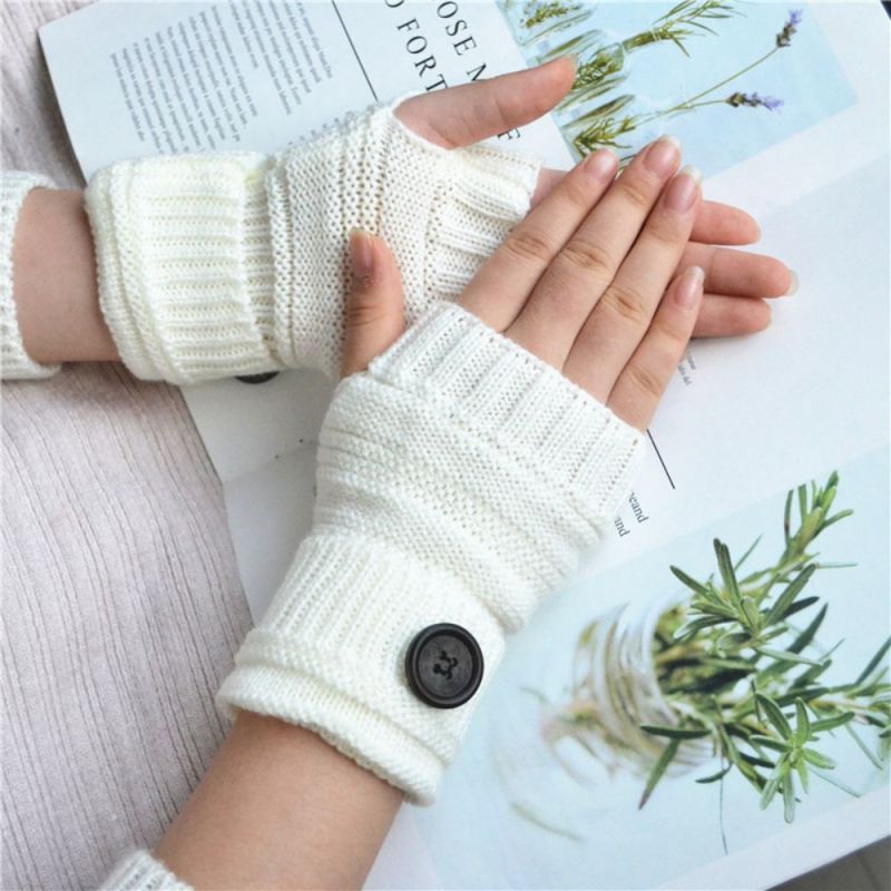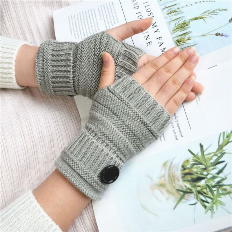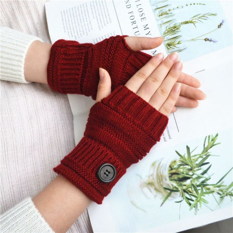 Winter Warm Knopf Wollhandschuhe Halbfinger-handschuhe