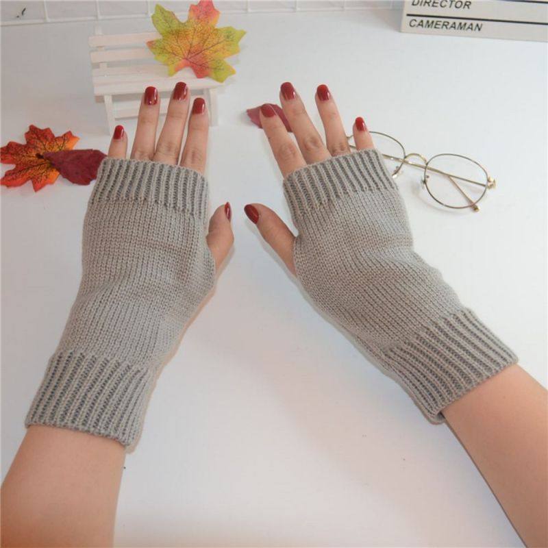 Halbfinger-handschuhe Für Damen Im Winter, Warm, Einfarbig, Einfarbig, Gestrickt