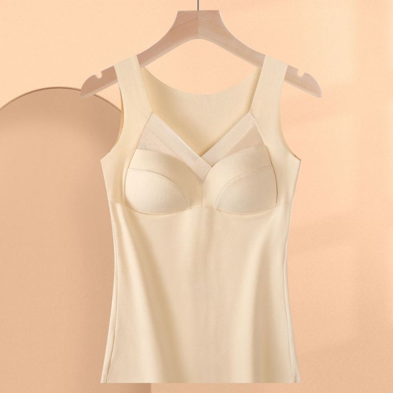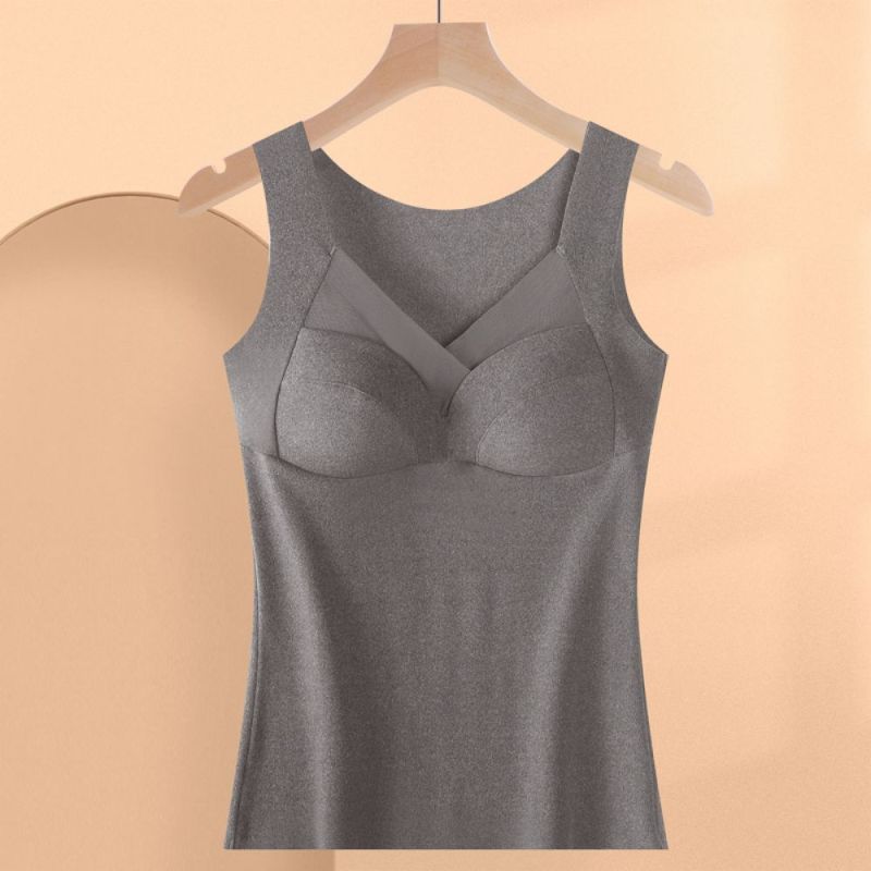 Winter Warme Weste Unterwäsche Damen Fleece Verdickung Boden Shirt Damen Nahtloser Einteiler Mit Brustpolster