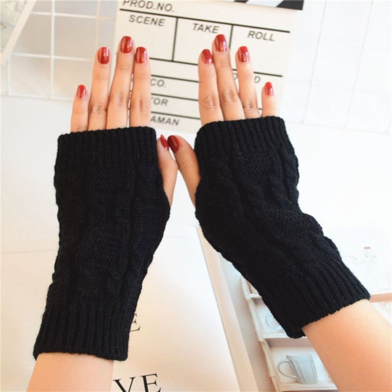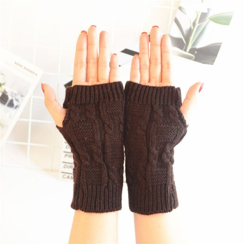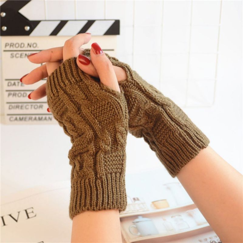 Winter-frauen-muster Gestrickte Wolle Fingerlose Einfarbige Halbfinger-handschuhe Mit Gewinde