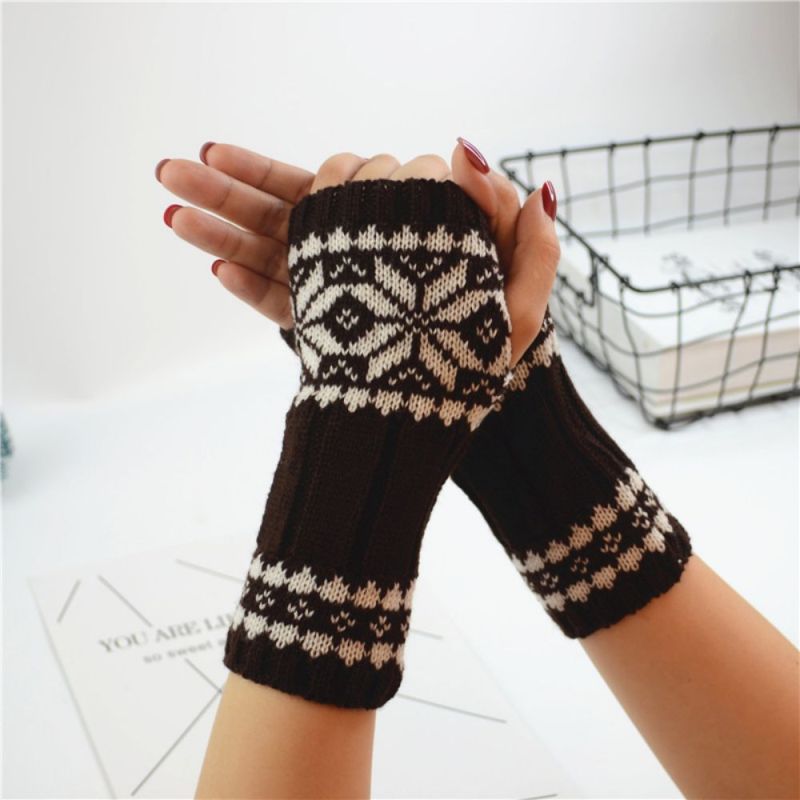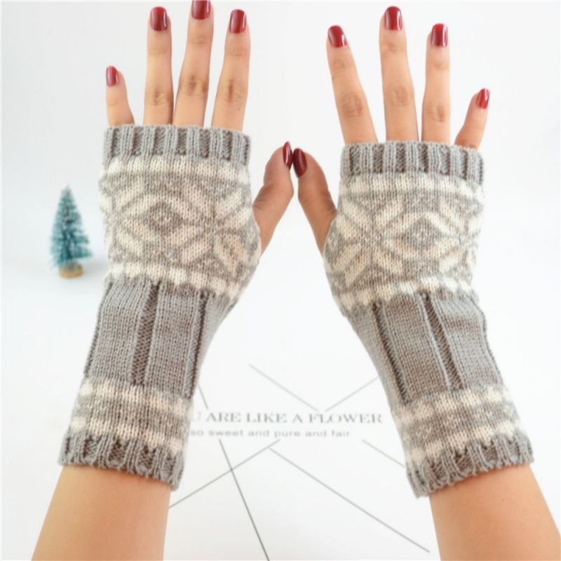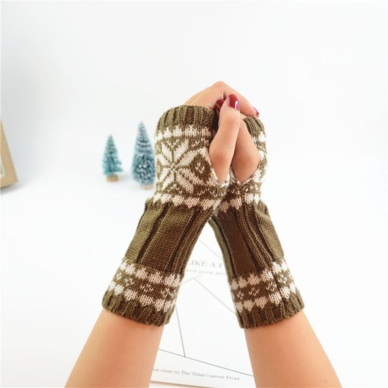 Winter Damen Ärmel Wollstrickhandschuhe Warme Kurze Schneeflocke Arm Ärmel